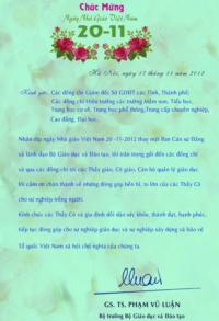 Thư chúc mừng ngày Nhà giáo Việt Nam của Bộ trưởng Bộ GD&ĐT ...